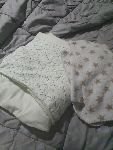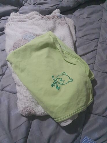 - Mekana dečja ćebad/ćebenca: jedno plišano u bež tonu sa zvezdicama, drugo jednobojno svetlozeleno sa aplikacijom/vezenim medom i natpisom.
