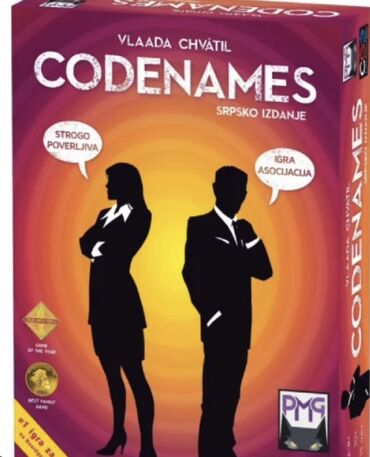 - Codenames – srpsko izdanje popularne igre asocijacija. Dva tima pokušavaju da pronađu svoje tajne agente na mreži reči pomoću tragova u jednoj reči koje daje njihov šef špijuna. Brza, duhovita i napeta party igra za veći broj igrača. Na kutiji istaknuto: „Strogo poverljiva” i „Igra asocijacija”. Autorsko ime: Vlaada Chvátil. PMG izdanje.
