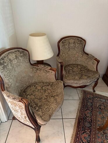 Antikvetska fotelja u klasičnom stilu sa drvenom konstrukcijom i