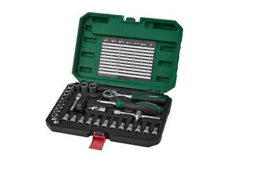 - Širok raspon nasadnih ključeva (gedora): više veličina u metričkim dimenzijama, uredno raspoređene u ležištima. Donji red sitnijih dimenzija, bočno veći nasadni ključevi za jače primene.