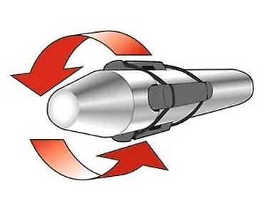 - Mehanizam konvertuje udar čekića u snažan obrtni moment (ilustracija prikazuje smer rotacije).