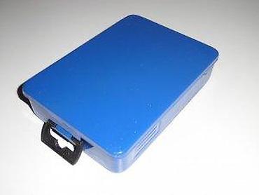 - Organizator/držač sa označenim ležištima i metalna plava kutija sa preklopnim poklopcem za sigurno čuvanje i prenos.