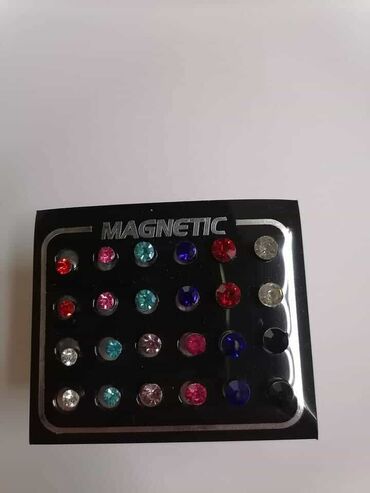 ŠarenoSet magnetnih minđuša – 24 komada na kartici.