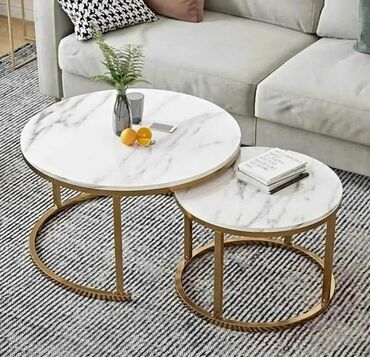 Set klub-stolova (2 komada) – moderan dizajn sa efektom mermera - Oblik: okrugli, ugnježdivi set (veći + manji sto). Manji sto se lako uvlači ispod većeg radi uštede prostora. - Gornja ploča: zavr...
