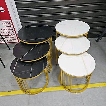 🏡 Unesite eleganciju i moderan stil u svoj dom uz ovaj prelepi set od tri stola koji se savršeno uklapaju u svaki dnevni boravak, apartman ili kancelariju. Minimalistički dizajn sa zlatnim metalnim postoljem i pločom sa imitacijom mermera daje prostoru luksuzan i sofisticiran izgled.