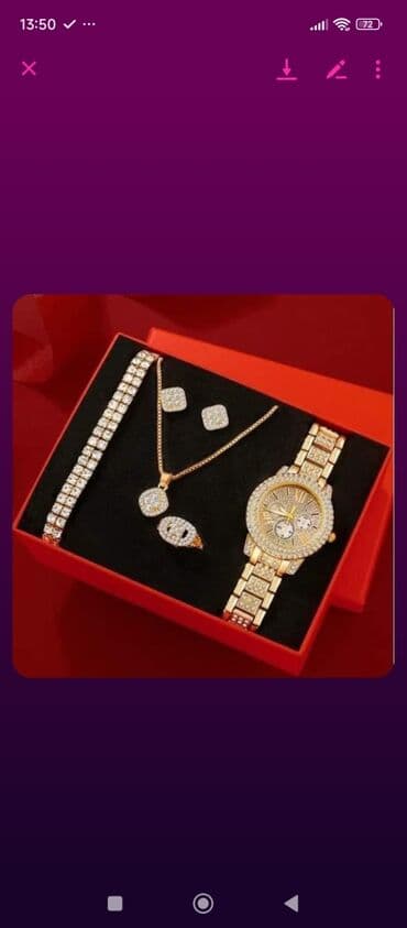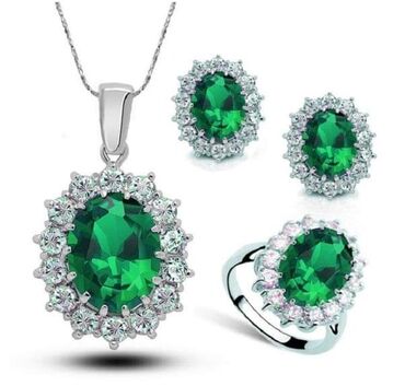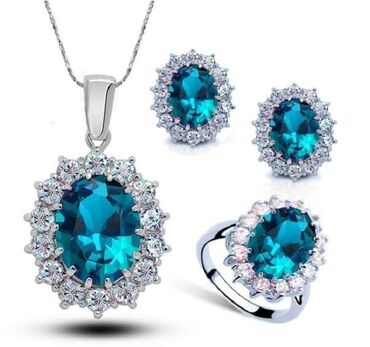 Set modnog nakita – ogrlice i narukvice - Ogrlica na crnoj kožnoj/eko kožnoj trakici sa privjeskom u obliku cveta od sjajnih bezbojnih kamenčića. - Ogrlica na tamnom lančiću sa sitnim visećim priv...