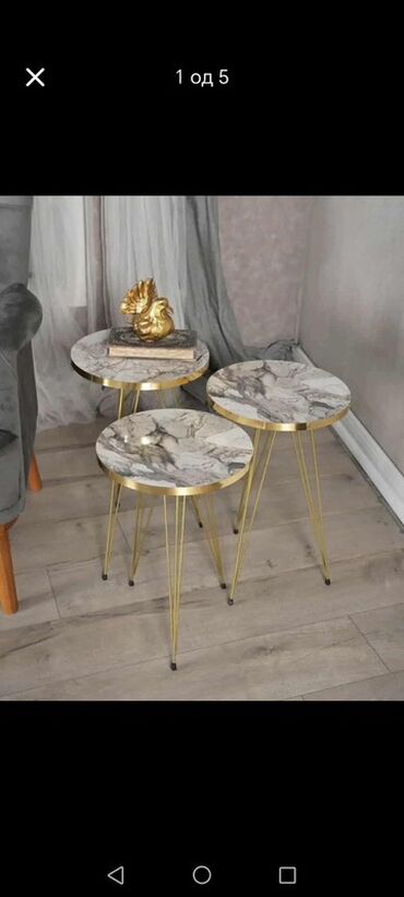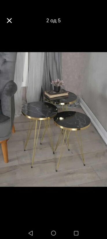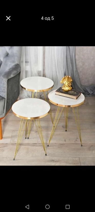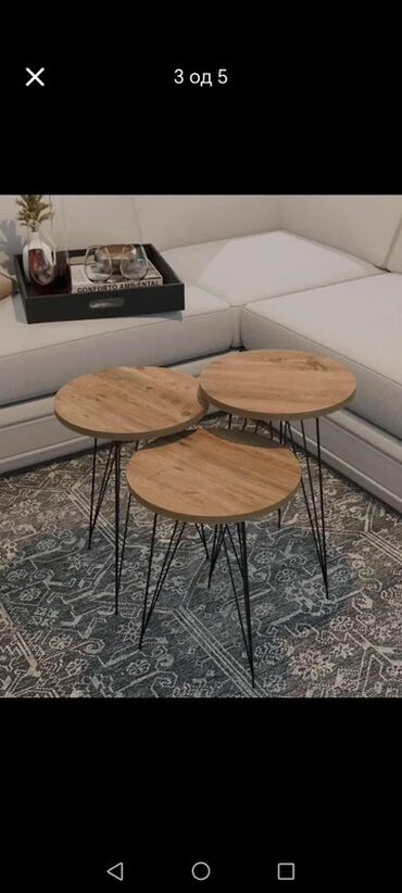 Set od 3 klub stolića – moderni skandinavski dizajn Set stočića " Gold" 3/1 Precnik: 33cm Visina: 48, 52, 55cm Cena: 5400