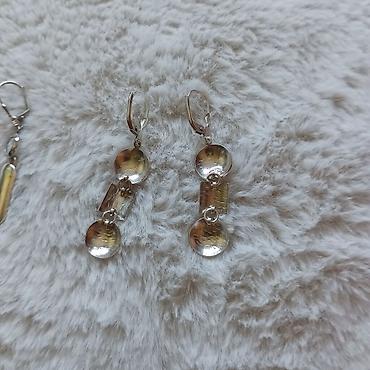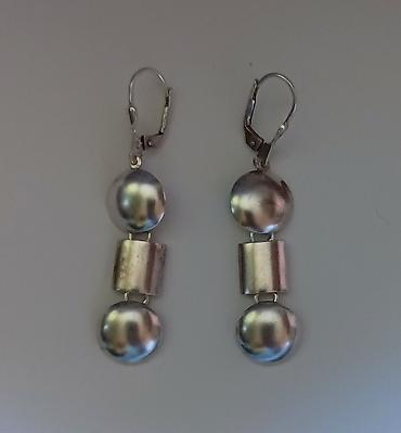 - Par 2: Viseće minđuše sastavljene od dve metalne polulopte i cilindričnog elementa u sredini. Mat-saten i sjajna završna obrada u kombinaciji. Kopčanje: klapna (leverback).