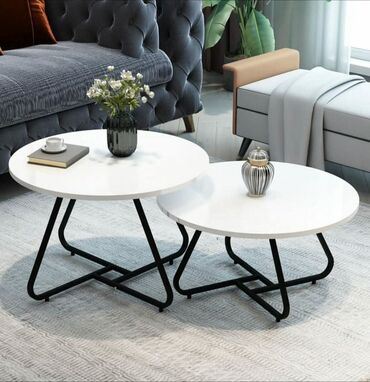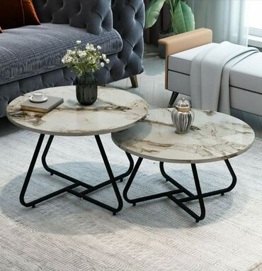 Set klub-stolova (2 komada) – moderan dizajn sa efektom mermera - Oblik: okrugli, ugnježdivi set (veći + manji sto). Manji sto se lako uvlači ispod većeg radi uštede prostora. - Gornja ploča: zavr...