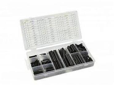 Set opruga–zabrtvnih klinova (spring pin/roll pin) u plastičnoj kutiji