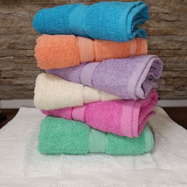 Pamučni peškiri – setovi u raznim bojama i dimenzijama - Materijal: frotir/pamuk, mekani i upijajući, gustog tkanja - Boje: pastelne i žive nijanse (plava, siva, bež, krem, roze, ljubičasta, naran...