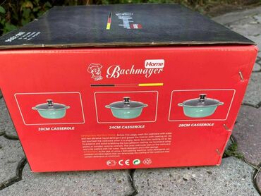 Ovaj set posuđa "Home Bachmayer" obuhvata tri šerpe različitih veličina sa poklopcima, idealne za raznovrsno kuvanje. Posuđe je izrađeno od materijala koji obezbeđuje nelepljivu površinu, što olakšava pripremu jela i čišćenje. Drške su dizajnirane za lako i bezbedno rukovanje. Set je pogodan za sve vrste šporeta, uključujući i indukcione ploče, što ga čini praktičnim dodatkom svakoj kuhinji. Dizajniran je za dugotrajnu upotrebu i efikasno kuvanje.