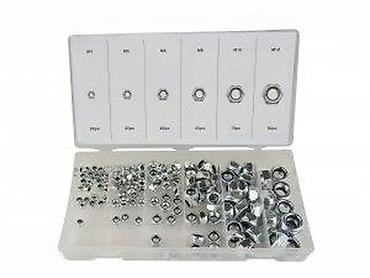 - Količine po veličini: M4 – 35 kom, M5 – 35 kom, M6 – 25 kom, M8 – 25 kom, M10 – 16 kom, M12 – 10 kom