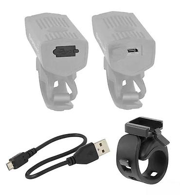 SET SVETALA FORCE USB DOT PREDNJE+ZADNJE | set prednjih i zadnjih svetla FORCE: prednje svetlo FORCE 1 X LED dioda 300 LM 2 funkcije osvetljenja: visoko / standardno + trepćuće baterija Li-Pol 1000 mAh, puni se mikro USB kablom trajanje baterije: visoki režim 2h / standardni 4h / treperi 8h veličina: 65x28x23mm zadnje svetlo FORCE 5 k crvena SMD LED velike snage 4 funkcije trepere, trajanje baterije: 3-8 sati prema na funkciju baterija Li-Pol 200mAh punjenje USB-om sa indikatorom, vreme punjenja: 1,5h veličina: 70x20x23mm materijal: plastika / legura, težina kompleta: 75 g upakovan u FORCE kutiju sa USB kablovima Šifra: 454075