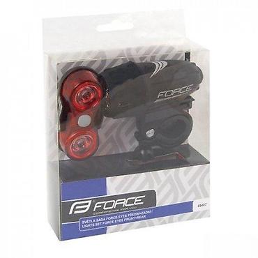 SET SVETALA FORCE EYES SADRŽI: PREDNJE SVETLO FORCE RANK 452015 x LED dioda2 funkcije: osvetljenja + tretpanjeUniverzalni držač za prečnike cevi 25,4 - 31,8 mmLako se montira bez alata Zadnje svetlo FORCE OPTIC 453842 LED diode 0,5 W3 Funkcije: konstantno + 2 treptuća modaMontiranje na cevi od 22,2 do 31,6 mm (podešavajuće)Moguće je i kačenje svetla na odeću, torbe i sl.