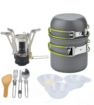 Praktičan i kompaktan kamping set za kuvanje idealan za kampovanje, planinarenje, pecanje ili bilo koju avanturu u prirodi. Omogućava jednostavno spremanje hrane na otvorenom – sve što vam treba u jednom paketu!