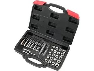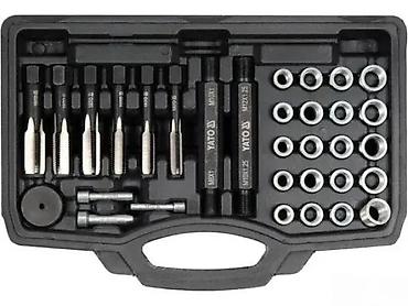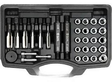 Profesionalni komplet za obnovu oštećenih ili izlizanim navoja na vijcima i u navojnim rupama. Organizovan u čvrstoj plastičnoj kutiji sa ručkom i pregradama za svaki element.