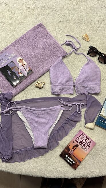 Ženski bikini set – model sa prstenovima i dugim vezicama - Dvodilni kupaći kostim sa trouglastim gornjim delom na kliznim korpicama. - Dekorativni metalni prsten na sredini grudnjaka i sa obe str...