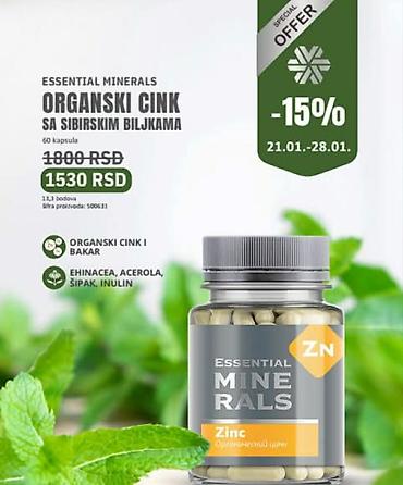 - Organski cink, 60 kapsula – 1530 RSD (precrtano 1800 RSD)