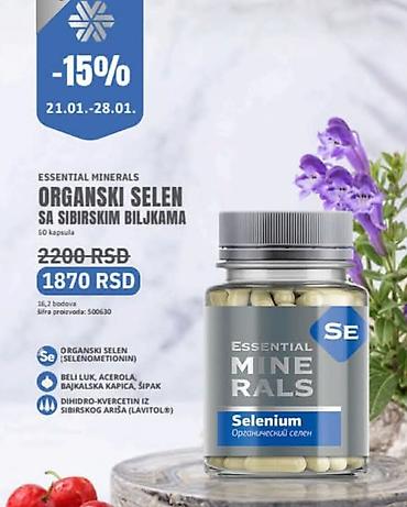 - Organski selen (selenometionin), 60 kapsula – 1870 RSD (precrtano 2200 RSD)
