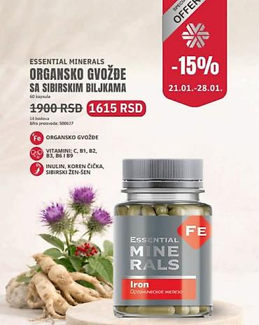 - Organsko gvožđe, 60 kapsula – 1615 RSD (precrtano 1900 RSD)