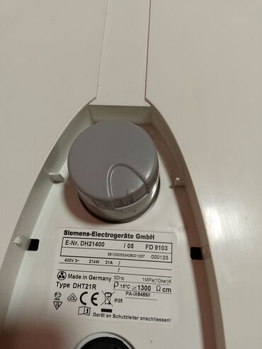 SIEMENS protočni električni bojler – model DHT21R (E-Nr. DH21400) - Snaga: 21 kW - Napajanje: 400 V ~, 3-fazno, 50 Hz - Struja: 31 A - Stepen zaštite: IP25 - Radni pritisak: do 1 MPa (10 bar) - Pr...