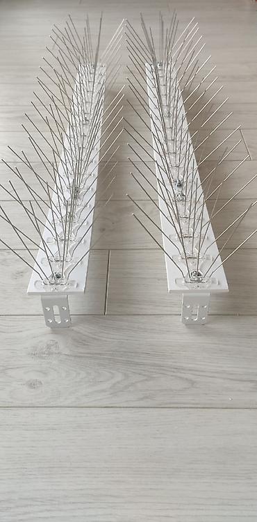 - Šiljci su zašrafljeni na PVC nosače dužine 68 cm (dimenzija odgovara klimama od 12.000 BTU), po 5 šiljaka u svakom redu.