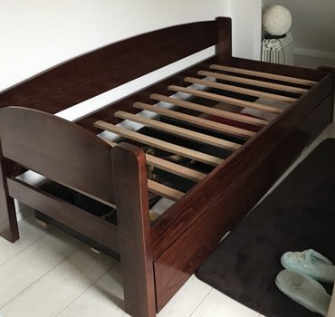 STILL Room BG – izrada pločastog i tapaciranog nameštaja po meri - Francuski ležaj sa tapaciranim uzglavljem, modernog dizajna, sa noćnim stočićima na fotografiji. Istaknuta cena: 260 €. - Moderna...