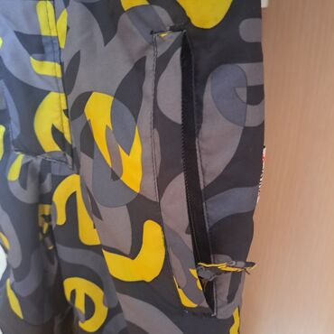 Zimske i kišne jakne + skijaške pantalone – komplet za decu/juniore - Komplet 1: Skijaška jakna sa kapuljačom, tamna osnova sa geometrijskim printom (crveno/žuto/sivo), topla postava, dva bočna ra...
