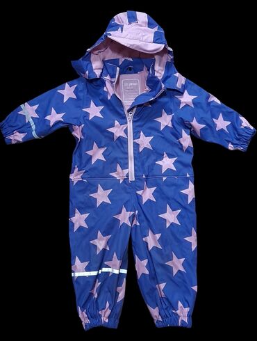 Dečiji zimski kombinezon sa kapuljačom - Boja: dvobojni – gornji deo i rukavi tamnoplavi, donji deo svetlozeleni - Zatvaranje: dugi kosi rajsferšlus napred radi lakšeg oblačenja i svlačenja - Mate...