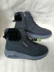 Toplene ženske čizmice Skechers sa unutrašnjom mekano‑plišanom postavom. Model do članka sa pertlama i praktičnim bočnim rajsferšlusom za lako obuvanje. Deblji đon sa „air” komorom pruža amortizaciju i udobnost pri hodu, a gumeni gazni sloj daje dobro prianjanje na klizavim podlogama. Diskretan logo sa strane.