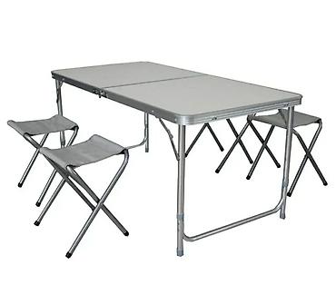 Praktičan i kompaktan sklopivi kamping set – sto i 4 stolice u jednom koferu.