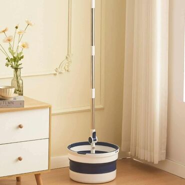 Sklopivi set za čišćenje podova – kanta sa mehanizmom za ispiranje i teleskopska mop drška - Kompaktna, sklopiva kanta: visina 19 cm u upotrebi, svega 7 cm kada je sklopljena; prečnik 32 cm. Lako ...
