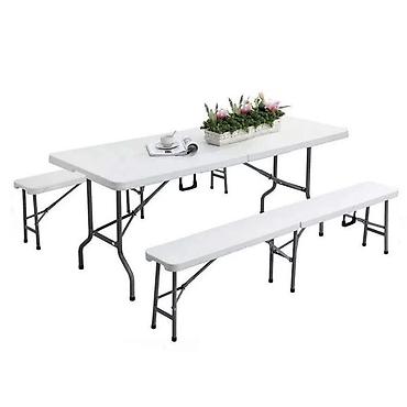 Sklopivi set, koji uključuje 1 sto i 2 klupe, omogućava lako skladištenje i transport, dok stabilan metalni okvir i plastične površine garantuju izdržljivost. Zahvaljujući univerzalnom dizajnu, idealan je za baštenske zabave, porodične ili poslovne događaje.