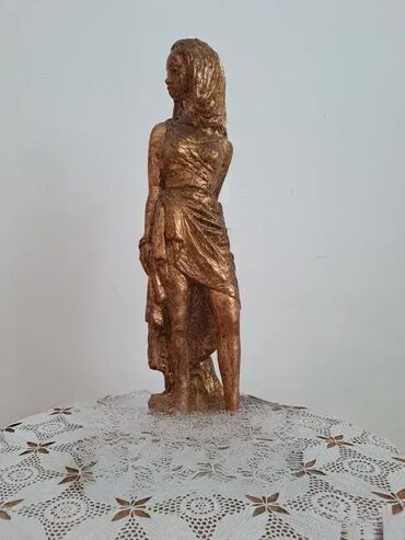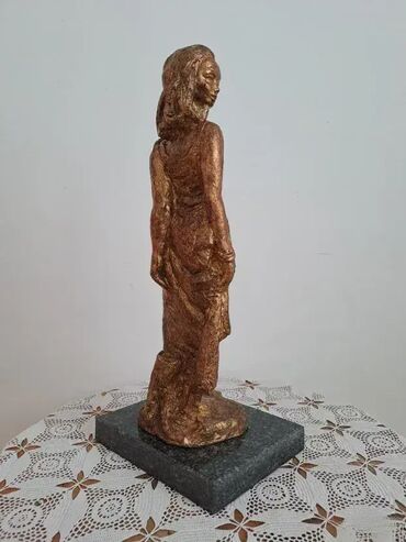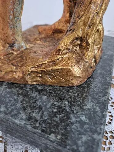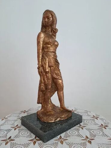 Pokupiti na licu mestaSkulptura devojke na mermernom postolju, potpisana. Ne znam od kog je metala, boja starog zlata. Ukupna visina 46cm.