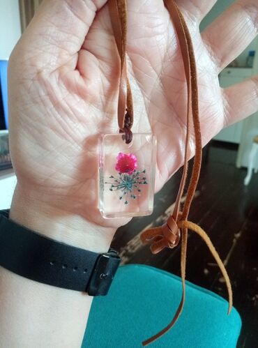 NovoSlatka letnja ogrlica, epoksi smola-koža, za ljubitelje prirodnih materijala.