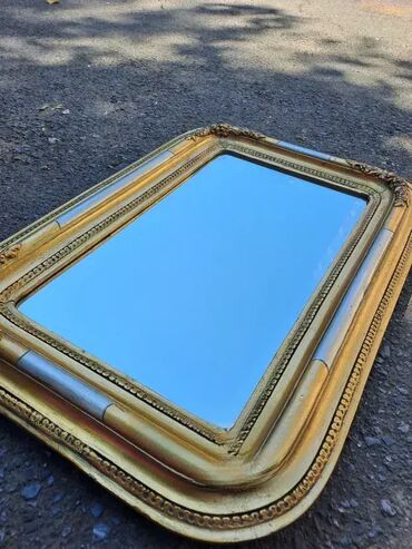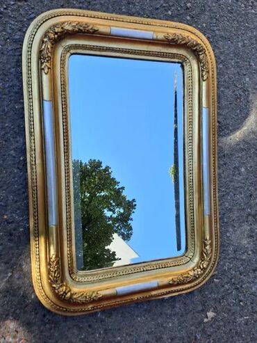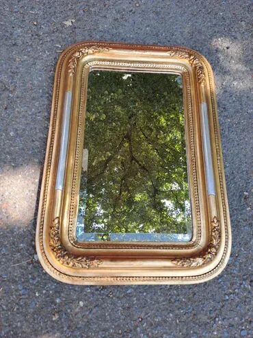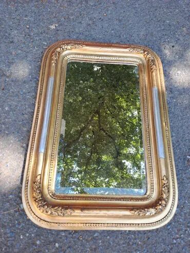 Staro, drveno ogledalo sa ramom u boji starog zlata. Ogledalo je u