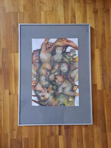 UpotrebljenоSlika naseg poznatog vajara Milosa Sarica iz 1988g. Radjeno ja pastelom na lesonitu. Dimenzija same slike 48x33cm.