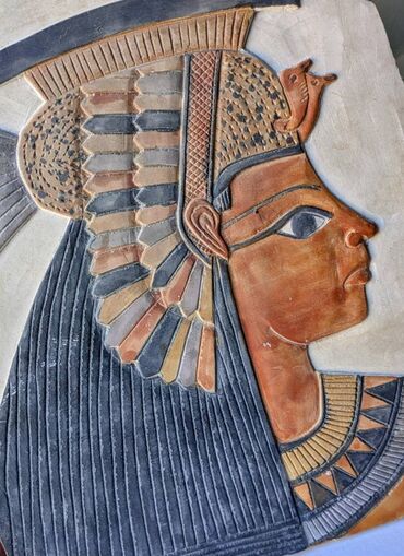 Egipatska slika na papirusu sa motivom muzičarki, uramljena između dve staklene ploče sa metalnim distancerima. Autentičan izgled papirusa sa vertikalnim vlaknima, ručno oslikani detalji u bojama (...