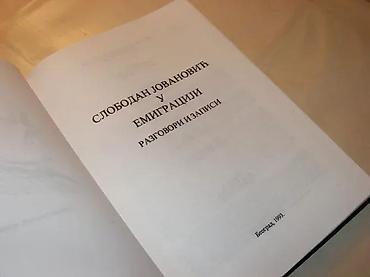 Slobodan Jovanović u emigraciji razgovori i zapisiIzdavači: Službeni list SRJ Dosije, Beograd 1993Autori: Slobodan Jovanović, Kosta St. PavlovićPovez: tvrd sa srebrotiskomBroj strana: 231Stanje Veoma dobro, neznatno podvlačenje teksta.