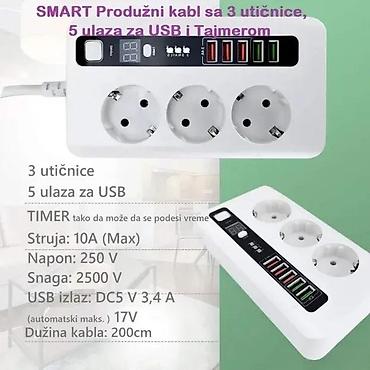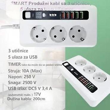 SMART produžni kabl sa tajmerom – 3 AC utičnice + 5 USB portova