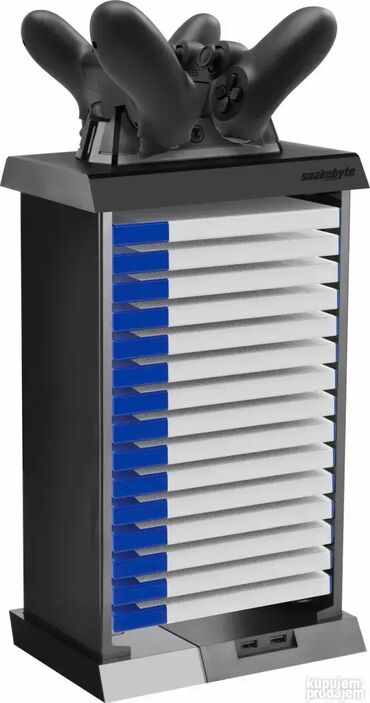 UpotrebljenоSnakebyte CHARGE: TOWER PRO™ for PS4 - Mini ormarić do 15 diskova (igre/Blu-rai filmovi)- Služi kao USB čvorište sa dva USB porta- Uključuje postolje za punjenje za dva kontrolera- LED indikator statusa punjenja- Lako se sklapa- Odgovara dizajnu konzole