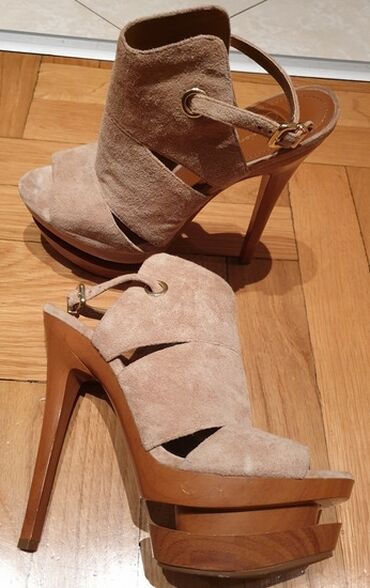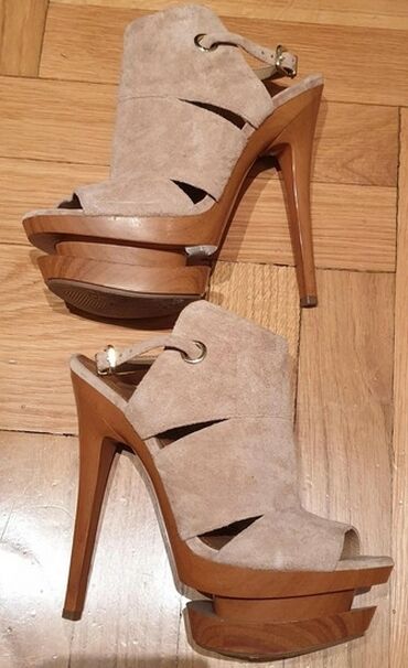 Potpuno nove sandale, broj 37. Veštački materijal. Visina štikle 8 cm.1 500 RSD