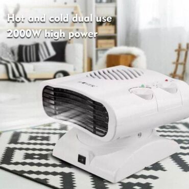 Industrijski zidni grejač/ventilator (toplovodni kalorifer) - Kompaktna metalna jedinica sa prednjom rešetkom sa lamelama za usmeravanje vazduha. - Na zadnjoj strani čvrsto kućište u plavoj boji; ...