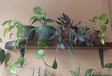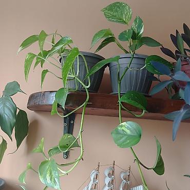 - Zeleni potos (Epipremnum aureum) – tri razvijene biljake. Odlično prekrivaju police ili se mogu spustiti iz visećih saksija. Brzo raste, dobro podnosi polusenku i retko zalivanje. Idealno za prečišćavanje vazduha u enterijeru.