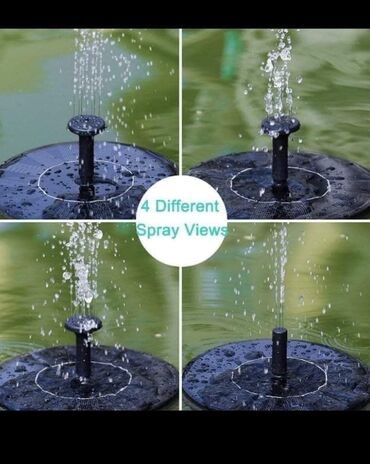 Solarna fontana: potpuno je kontrolisana solarnom energijom, ne zahteva struju ili bateriju. Što je jača sunčeva svetlost, to je bolji efekat. Kada koristite proizvod, izložite ga neometanoj sunčevoj svetlosti. Višestruke primene: ova solarna pumpa je savršena za kupanje ptica, akvarijum, mali ribnjak, bazen, baštu, cirkulaciju vode za kiseonik. Zanimljiva i hladna dekoracija fontane koja će učiniti vašu baštu i dvorište privlačnijim. Stil 6 uređaja za prskanje: opremljen sa 6 različitih mlaznica, možete uživati u 6 različitih šablona fontana sa ovom solarnom pumpom za vodu i hidrostatičkom glavom. Voda može izdržati do pribl. 30-55 cm. Jednostavan za upotrebu: veoma je lagan, samo stavite mlaznicu i solarnu pumpu za fontanu u vodu, pustite da pluta na vodi. Solarna pumpa se automatski raspršuje za nekoliko sekundi kada je jaka sunčeva svetlost direktno na solarni panel. Podsetnik: Redovno čistite svoju pumpu za fontane kako bi mogla neprekidno prskati vodu i bolje zaštititi vašu solarnu pumpu za fontane