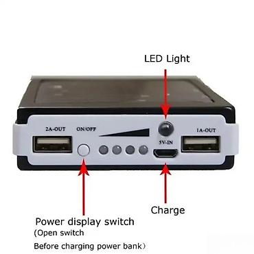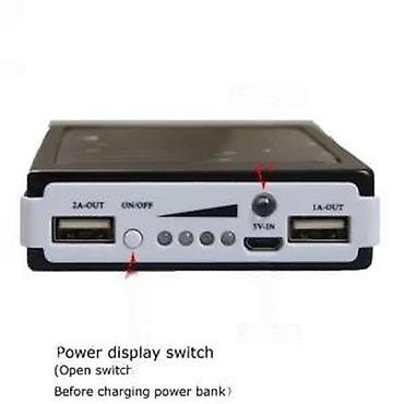 - Prenosiva eksterna baterija sa ugrađenim solarnim panelom za dopunu energije putem sunca ili klasičnog punjenja (5V-IN).