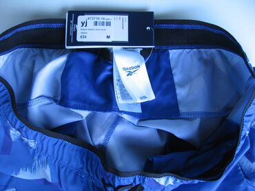 Reebok Manzoor sorts za kupanje u kombinaciji plavih, crne i bele boje, velicina M, dva dzepa sa strane, novo-nekorisceno sa etiketom
