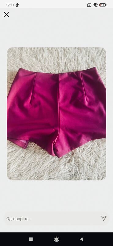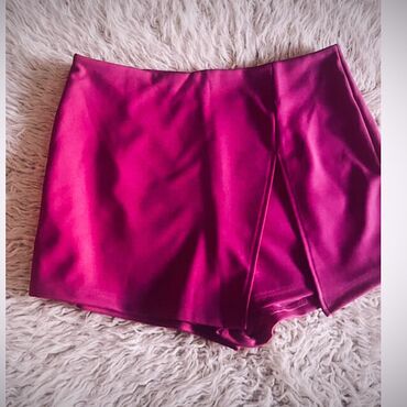 ZARA BASIC suknja, izrađena od 100% pamuka. Suknja je svetloljubičaste boje, sa visokim strukom i plisiranim detaljima, što joj daje moderan i elegantan izgled. Dizajn uključuje bočne džepove i dis...