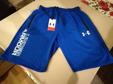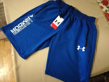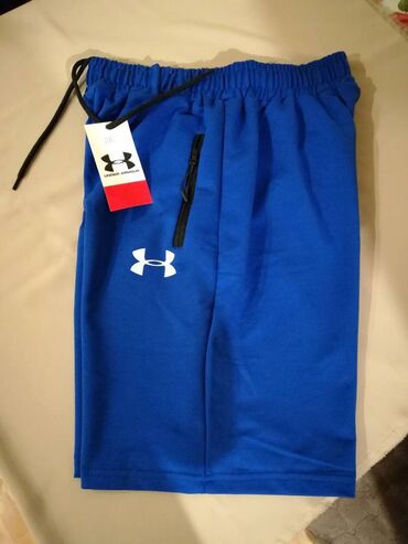 Nove muske pamucne markirane bermude Under Armour. Turske. Vrlo dobre muske pamucne bermude za muskarce svih generacija. Veoma prijatne za nosenje, izradjene su od kvalitetnog i prirodnog materijala. Imaju dva dzepa sa ziperom na bokovima. Lagane, komotne muske bermude, idealne za toplo prolecno i letnje vreme. Odlicne muske pamucne bermude za svaki dan, idealne za posebne prilike i okolnosti. Muske pamucne bermude Under Armour su nove sa etiketom.